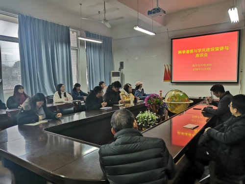 12月9日下午,城环学院在院会议室组织开展了科学道德与学风建设宣讲暨座谈会活动。副经理吴乐知、教授尹发能、副教授桂智凡、科研办王娟老师以及2020级全体研究生参加了活动。