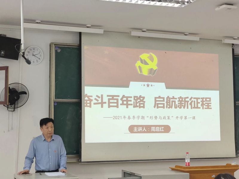 为了更好地引导同学们进行党史学习,了解党史学习教育的重大意义,2021年5月14日下午2点30分,周启红书记在教育大楼1j33教室为城环学子讲授了一堂内容精彩、别开生面、生动活泼的“形势与政策”课程。