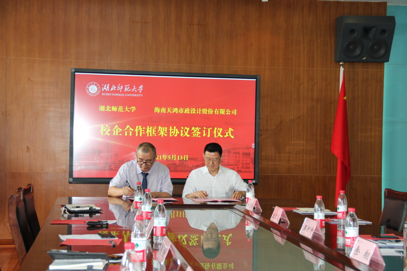 (副董事长余翔与海南天鸿市政股份有限公司董事长柏斌签订校企合作框架协议)