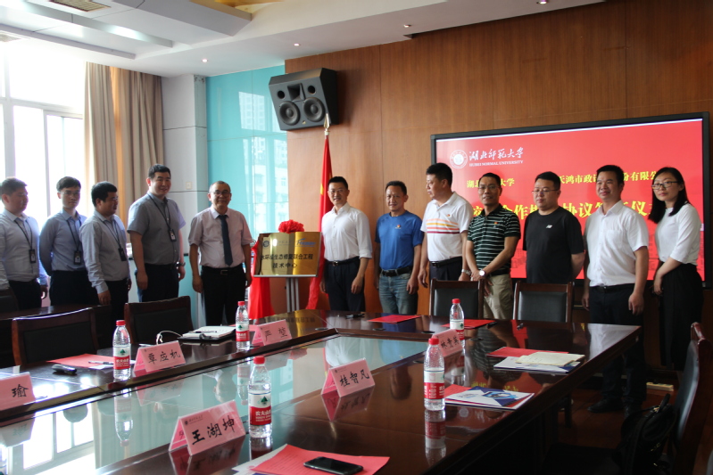 余翔对海南天鸿市政股份有限公司领导来校开展校企合作表示热烈欢迎。随后,双方就各自发展优势和需求进行了深入交流。双方一致认为,两者可在技术研发、项目合作和人才培养等方面进行全面合作,实现优势互补、合作共赢。会上,余翔与柏斌共同签订了校企合作框架协议,并为“水环境生态修复联合工程技术中心”揭牌。会后,海南天鸿市政设计股份有限公司领导参观了三角荷塘、青山湖生态修复示范工程和水环境生态修复实验室。