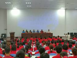 典礼在雄壮的国歌声中正式开始,奏唱国歌后,王湖坤经理为新生致辞。王经理指出,大学是一个新起点,无论过去如何,大学是一个新的开始,同学们应当发光发热,多多参加活动,努力学习,让自己大学四年充实且无悔。随后,新生班主任代表殷辉老师讲述自己的求学之路,殷老师毕业于东北大学学科教学地理专业,在大学期间,殷老师经常去图书馆,一待就是一整天,在图书馆里学到了许多知识,所以殷老师建议同学们多去图书馆。1907班的马炎钧同学作为新生代表讲述了自己的高中生活,不好好学习整天玩乐,考上大专后,也是浑浑噩噩的。参军两年回来后,发愤图强努力学习,用一年时间考上了三亿体育app,他表示一定会珍惜大学时光,争做一名有志青年。员工会副主席朱顺杰劝导同学们好好学习,不要荒废自己的老员工活,空余时间多参加社团活动充实自己。