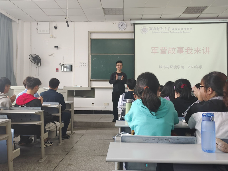 活动伊始,殷辉老师简单介绍了四位退役老员工士兵的基本情况。随后,4名退役老员工充满激情地向同学们分享了自己不一样的青春记忆,发生在军营里的感人故事。他们或因为秉持家训,三代从军,将热血挥洒在祖国海域边疆;或甘于平凡和艰苦,在西北深山上守卫着祖国和平;或心怀向往,成为中国人民解放军空军一员。四位嘉宾的讲述,语言质朴、故事鲜活,让21级同学深受感动,备受鼓舞。