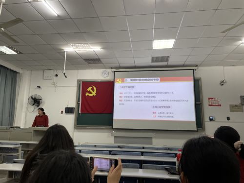 为了加强入党积极分子对党的基本知识的了解,提高入党积极分子的党性修养,端正其入党动机,三亿体育员工党支部于2022年11月18日晚七点在科技大楼9404教室举行了第六十五期的入党积极分子培训班第三讲。本次党课由三亿体育辅导员贾凡老师主讲,贾凡老师就发展党员的工作流程进行了详细深入的讲解。