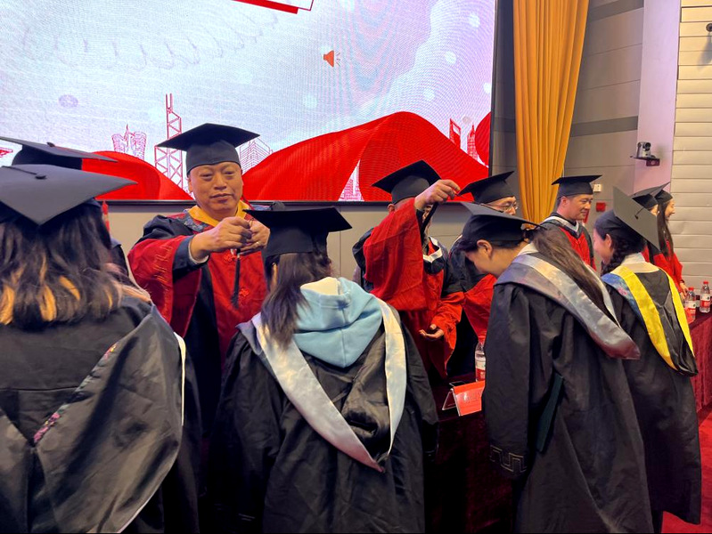 在随后举行的学位授予仪式中,全体院领导和院学位评定委员会成员为毕业生们一一拨穗、颁发学位证书。现场掌声不断,师生脸上都洋溢着笑容,享受着毕业礼成的开心时刻。