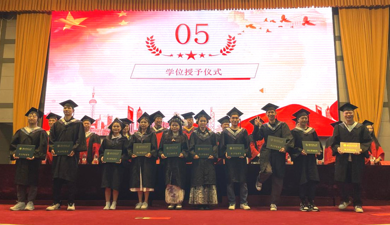 典礼最后,全场师生合唱《我们是光荣的湖师人》,共同祝愿母校五十周年校庆成功举办,为毕业典礼画上圆满句号。