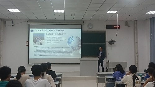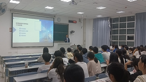 首先,陈爽老师向参加本次讲座的同学介绍荆现文老师,并要求同学们认真聆听本次讲座,为后期的专业学习打好基础。随后,荆现文老师“专业概述”、“专业核心课程”、“专业特色”、“就业去向”四个方面进行介绍。通过介绍地理信息科学的学科性质、时代背景、产业前景、专业核心教程,让同学们对地理信息科学专业有了进一步地了解。同时荆老师告诉同学们理论与实践紧密相结合是地理信息专业的特色,除了测量学、地理信息系统等理论知识的学习,还要进行地理信息的处理与分析、地图可视化制作等实践训练,有一半的课程内容要通过实践研究来掌握。最后,荆老师结合学院往届员工就业去向,向参加此次讲座的同学介绍地理信息科学专业的就业前景和就业方向,并在现场互动环节耐心倾听同学们的问题,并为他们答疑解惑。