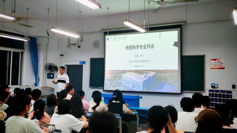 2025年9月9日晚,科技大楼9509教室座无虚席,地理科学专业导读在此举行。本次讲座旨在帮助2025级新生深入理解地理科学的学科内涵与发展前景,清晰规划学业与职业方向,为他们开启大学学习生活第一课。