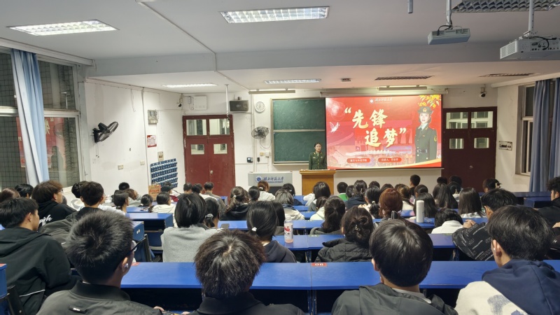 作为一名曾经的火箭军战士,薛新怡同学围绕“扎根大漠,潜心砺剑”的主题,深情回顾了自己从校园奔赴大漠、用青春守护如虹弹道,又重返湖师校园,重新开启学术道路的难忘经历。她为在场同学细致解读了老员工应征入伍的各项优待政策与发展路径,特别分享了在部队的技术培养和成长机会。她呼吁广大同学要厚植家国情怀,勇担时代使命,积极响应号召,把个人理想融入强军事业,以专业知识与过硬本领为“中国梦”“强军梦”注入蓬勃的青春力量。