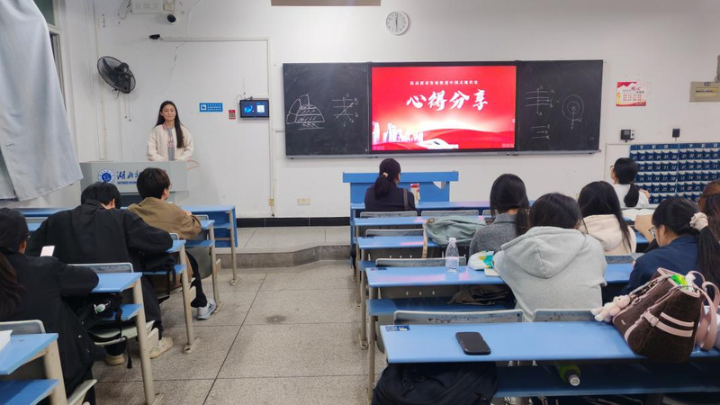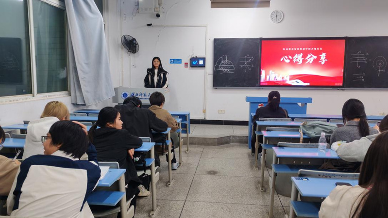 在分享交流环节,京伊斯古勒·哈力克同学结合班会主题与自身观察,畅谈了对“全体人民共同富裕的现代化”的理解。她表示,“城乡均衡发展”的理念可以从实习途中宜昌乡村的变迁中得到生动印证——特色农产品产销链条的完善、乡村文旅产业的兴起,让偏远地区群众共享发展成果。作为地理专业员工,未来将重点钻研区域发展规划知识,为不同地区因地制宜实现共同富裕贡献智慧。