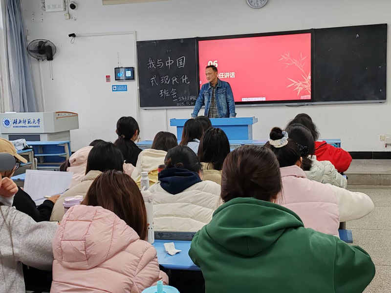 为引导员工深刻理解中国式现代化内涵,强化青年使命担当,同时推进班级学风建设与清廉文化培育,11月10日,城环2301班于科技大楼9706以“我与中国式现代化”为主题开展主题班会。班会由班长曾鹏艳主持,班主任杨应华老师及2301班全体同学参与,严格按照“清点人数—理论宣讲—清廉教育—心得分享—事务通报—答疑点评”六大流程有序推进。