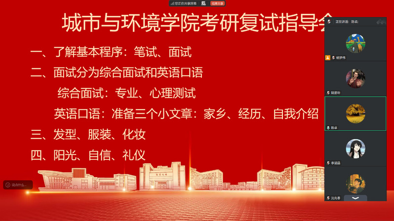本次会议为考生搭建了清晰备考框架,从程序梳理、内容准备到形象管理、心态塑造提供实用建议,助力考生从容应考。希望各位考生扎实备考,在复试中展现最佳实力,顺利开启研究生阶段的学术新征程。